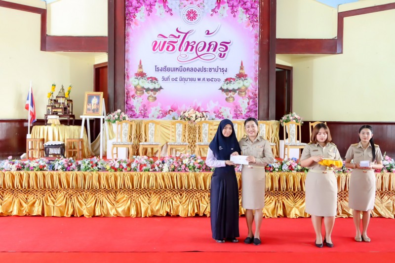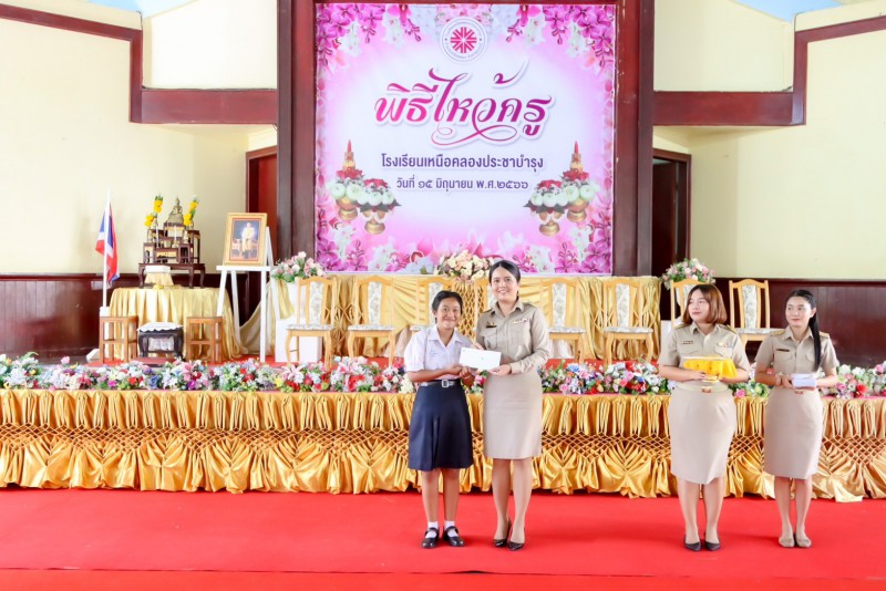 วันที่ 15 มิถุนายน 2566 โรงเรียนเหนือคลองประชาบำรุง ได้จัดพิธีมอบทุนการศึกษาให้กับนักเรียนโรงเรียนเหนือคลองประชาบำรุง จำนวน 200 ทุน รวมเป็นเงิน 231,000 บาท ในโอกาสนี้โรงเรียนเหนือคลองประชาบำรุงขอขอบพระคุณผู้ร่วมมอนุเคราะห์ทุนการศึกษา เนื่องในโอกาสวันไหว้ครู ปีการศึกษา 2566 มา ณ โอกาสนี้ |