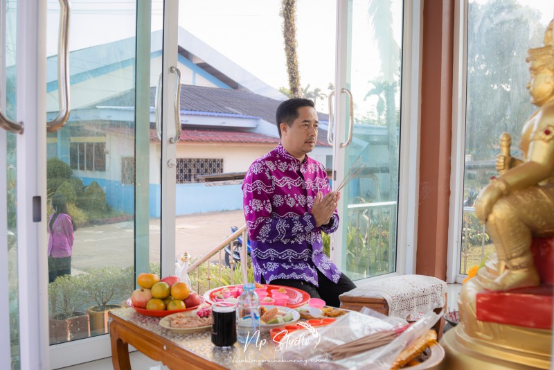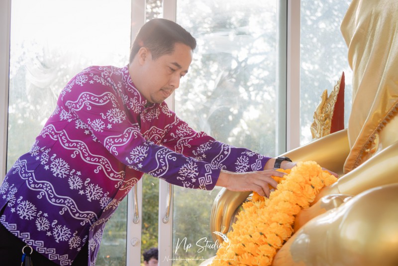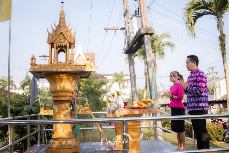 นายวันสุนทร ไชยโรจน์ รองผู้อำนวยการโรงเรียนและตัวแทนคณะครูและบุคลากรทางการศึกษาโรงเรียนเหนือคลองประชาบำรุง ร่วมทำพิธีสักการะพระพุทธชินราช วชิรากรและศาลพระภูมิเจ้าที่ สิ่งศักดิ์สิทธิ์ประจำโรงเรียน
