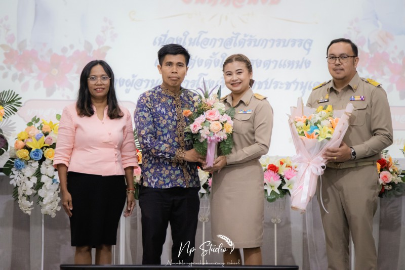 วันที่ 9 มกราคม 2567 โรงเรียนเหนือคลองประชาบำรุง นำโดย นางปัญญธิดา อัตบุตร พร้อมด้วยตัวแทนคณะครูและบุคลากรทางการศึกษา ร่วมแสดงความยินดีและเดินทางไปส่ง นางสาวณภาภัช ศิริพงษ์ ครู กลุ่มสาระการเรียนรู้ภาษาไทย เนื่องในโอกาสได้รับการบรรจุแต่งตั้งให้ดำรงตำแหน่ง รองผู้อำนวยการโรงเรียนราชประชานุเคราะห์ 1 โดยมีคณะกรรมการสถานศึกษา คณะผู้บริหารและคณะครูโรงเรียนราชประชานุเคราะห์ 1 ร่วมให้การต้อนรับอย่างอบอุ่น ณ โรงเรียนราชประชานุเคราะห์ 1 จังหวัดกระบี่ |