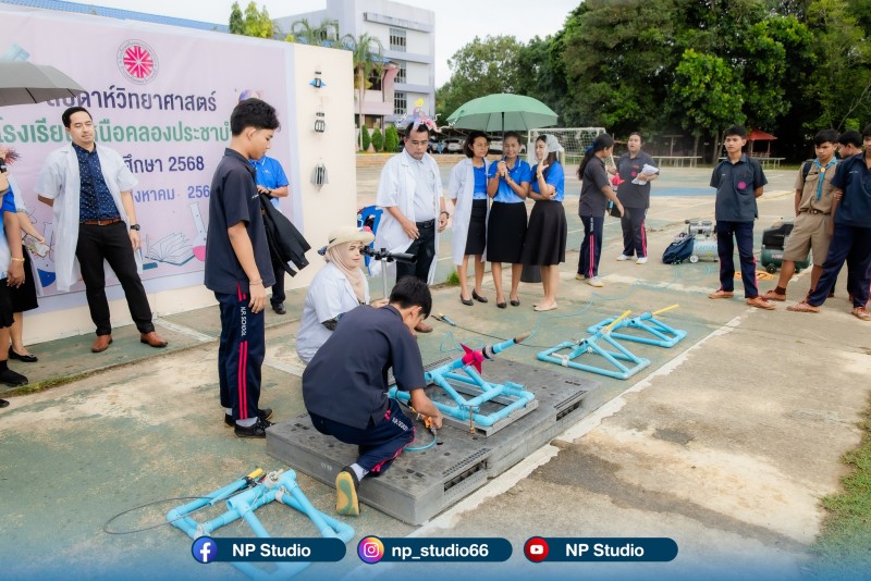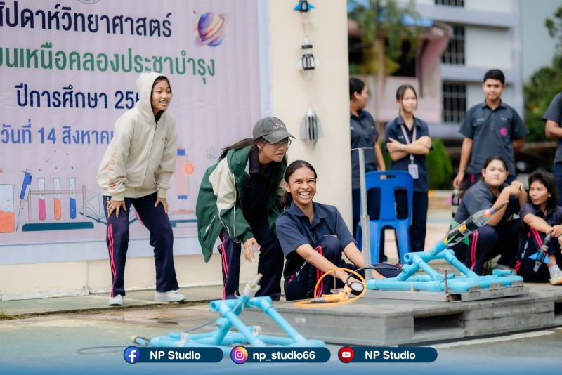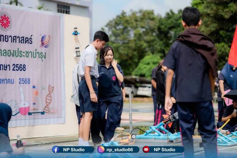 วันที่ 14 สิงหาคม 2568 กลุ่มสาระการเรียนรู้วิทยาศาสตร์และเทคโนโลยี โรงเรียนเหนือคลองประชาบำรุง โดย คุณครูขนิษฐา กรกำแหง หัวหน้ากลุ่มสาระการเรียนรู้วิทยาศาสตร์และเทคโนโลยีและคณะ จัดกิจกรรมสัปดาห์วิทยาศาสตร์ ประจำปี 2568 ภายในงานได้จัดการแข่งขันทักษะวิชาการทางวิทยาศาสตร์ มีราายการแข่งขันทั้งหมดจำนวน 7 รายการ ได้แก่ การแข่งขันอัจฉริยภาพทางวิทยาศาสตร์ ม.ต้น / การแข่งขันอัจฉริยภาพทางวิทยาศาสตร์ ม.ปลาย (สายวิทย์) /การแข่งขันอัจฉริยภาพทางวิทยาศาสตร์ ม.ปลาย (สายศิลป์)/การแข่งขัน Science Show ม.ต้น/การแข่งขัน Science Show ม.ปลาย /การแข่งขันจรวดขวดน้ำ (ม.1-ม.6) /การแข่งขันวาดภาพสร้างสรรค์ทางวิทยาศาสตร์(ม.1-ม.6) ในการนี้ทางกลุ่มสาระฯได้รับเกียรติจาก นายวันสุนทร ไชยโรจน์ รองผู้อำนวยการกลุ่มบริหารวิชาการ ประธานในพิธีเปิดกิจกรรม และนางสาวขนิษฐา กรกำแหง หัวหน้ากลุ่มสาระการเรียนรู้วิทยาศาสตร์และเทคโนโลยีกล่าวรายงานวัตถุประสงค์การจัดกิจกรรม โดยได้รับความสนใจจากนักเรียนในการเข้าร่วมกิจกรรมจำนวนมาก ณ โรงเรียนเหนือคลองประชาบำรุง |