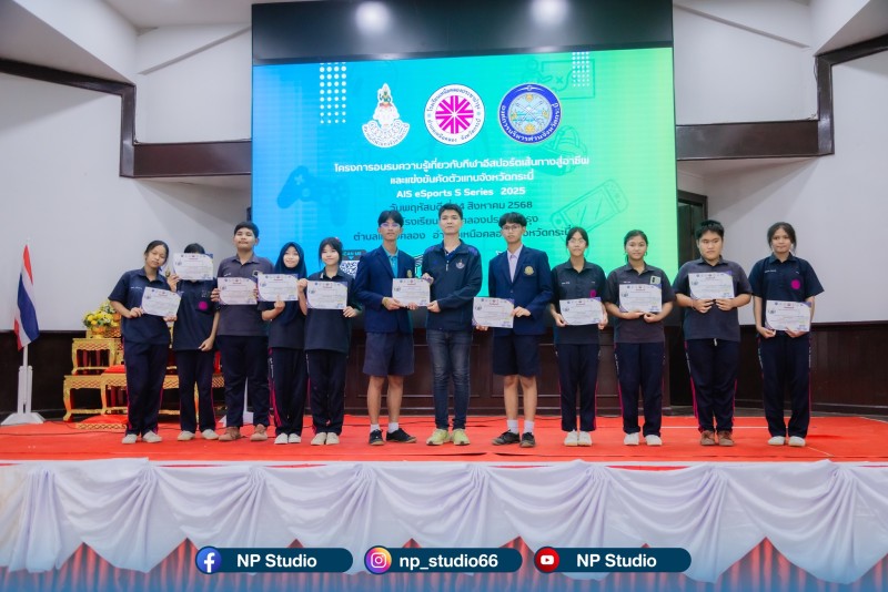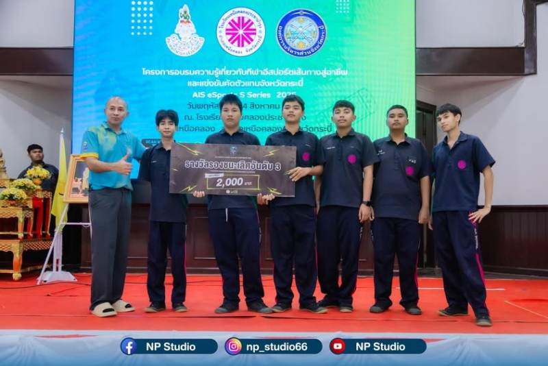 วันที่ 14 สิงหาคม 2568 ชุมนุมอีสปอร์ต โรงเรียนเหนือคลองประชาบำรุง โดย คุณครูอภิชาต เชียรวิชัย และ คุณครูจักรี มูลกุล ครูผู้รับผิดชอบชุมนุมอีสปอร์ต นำตัวแทนนักเรียนเข้าร่วมกิจกรรมโครงการอบรมความรู้เกี่ยวกับกีฬาอีสปอร์ตสู่เส้นทางอาชีพและการแข่งขันคัดตัวแทนจังหวัดกระบี่ การแข่งขัน AIS eSports S Series Thailand Championship 2025 ในการนี้ ตัวแทนนักเรียนของโรงเรียนเหนือคลองประชาบำรุง ได้รับรางวัลรองชนะเลิศอันดับ 3 พร้อมเงินรางวัล 2,000 บาท การจัดกิจกรรมในครั้งนี้ได้รับเกียรติจาก นายวันสุนทร ไชยโรจน์ รองผู้อำนวยการโรงเรียนเหนือคลองประชาบำรุง ประธานในพิธิเปิด พร้อมด้วย คณะผู้บริหาร ได้เข้าร่วมกิจกรรมและให้กำลังใจกับนักเรียนที่เข้าร่วมการคัดเลือกตัวแทนจังหวัดกระบี่ จัดโดยชมรมกีฬาอีสปอร์ตจังหวัดกระบี่ ภายใต้สมาคมกีฬาแห่งจังหวัดกระบี่ ณ อาคารอเนกประสงค์ โรงเรียนเหนือคลองประชาบำรุง |