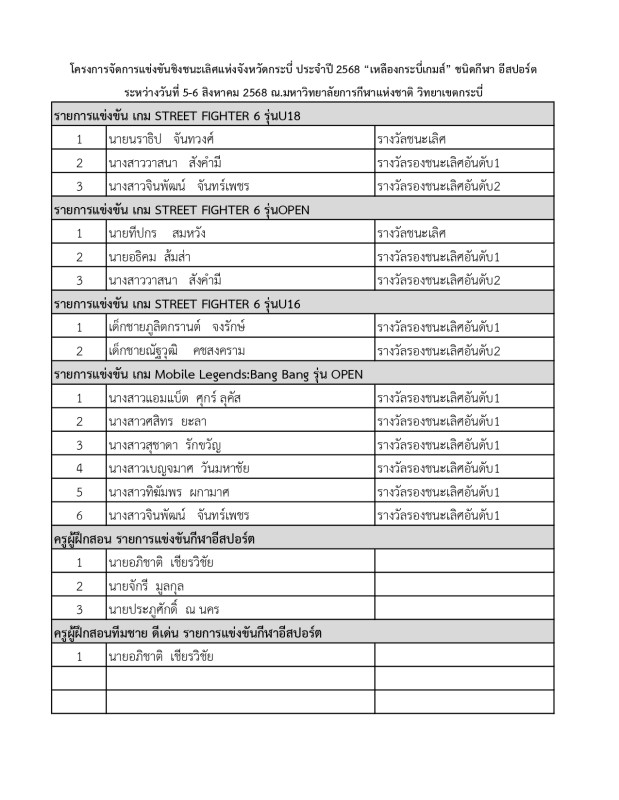 การแข่งขันชิงชนะเลิศจังหวัดกระบี่ ประจำปีงบประมาณ พ.ศ.2568