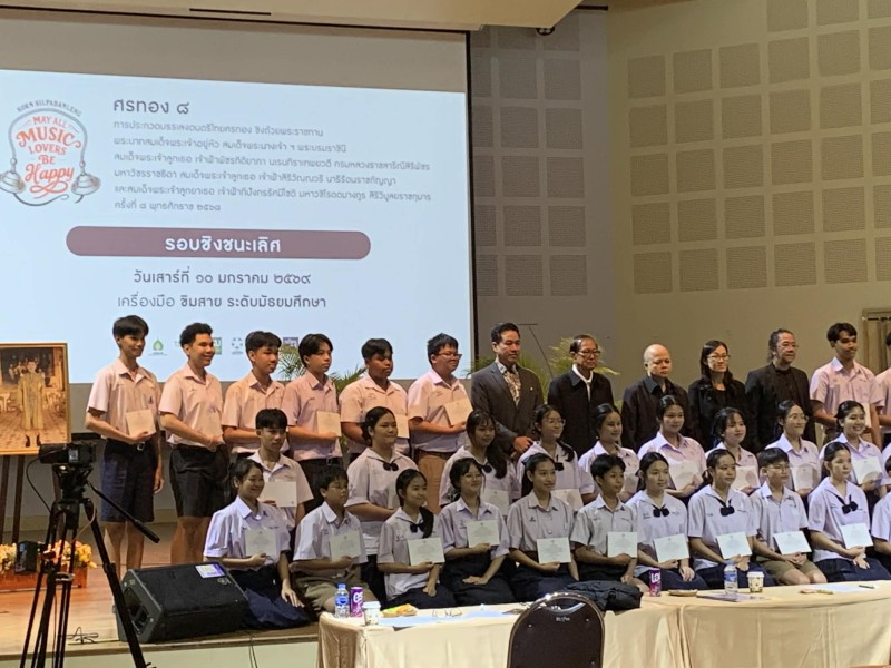 การประกวดบรรเลงดนตรีไทยศรทอง ชิงถ้วยพระราชทานพระบาทสมเด็จพระเจ้าอยู่หัว สมเด็จพระนางเจ้าฯ พระบรมราชินี สมเด็จพระเจ้าลูกเธอ เจ้าฟ้าพัชรกิติยาภา นเรนทิราเทพยวดี กรมหลวงราชสาริณีสิริพัชร มหาวัชรราชธิดา สมเด็จพระเจ้าลูกเธอ เจ้าฟ้าสิริวัณณวรี นารีรัตนราชกัญญา และสมเด็จพระเจ้าลูกยาเธอ เจ้าฟ้าทีปังกรรัศมีโชติ มหาวชิโรตตมางกูร สิริวิบูลยราชกุมาร ครั้งที่ 8 พุทธศักราช 2568 |