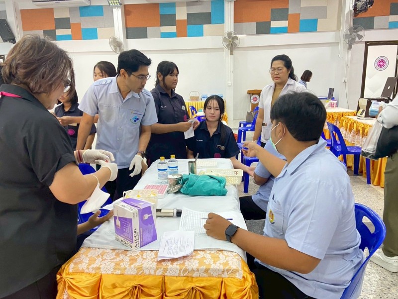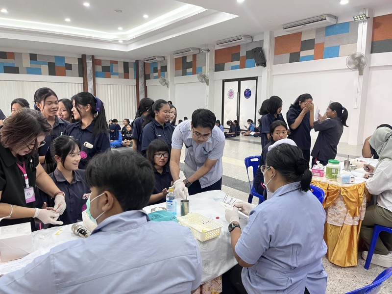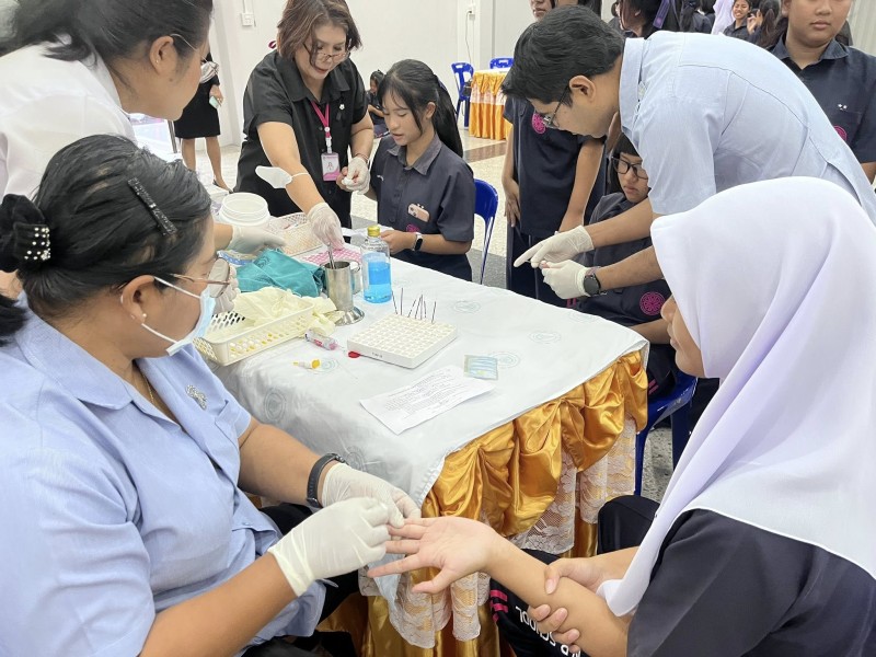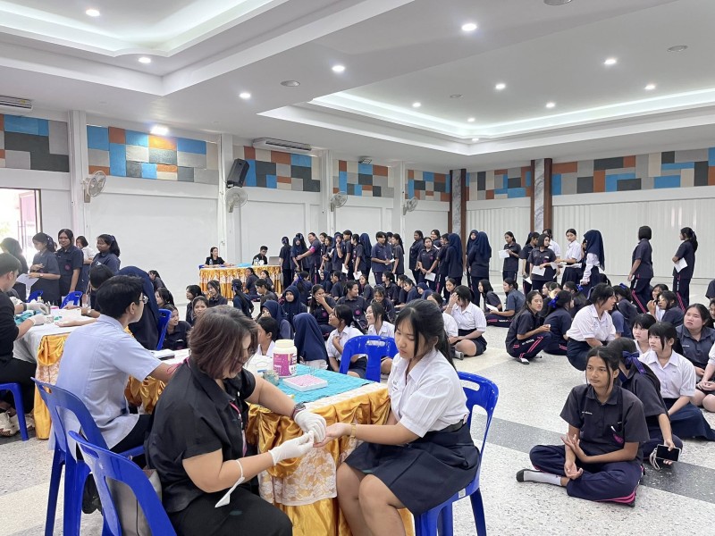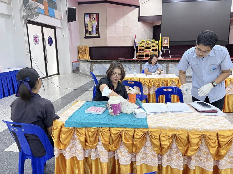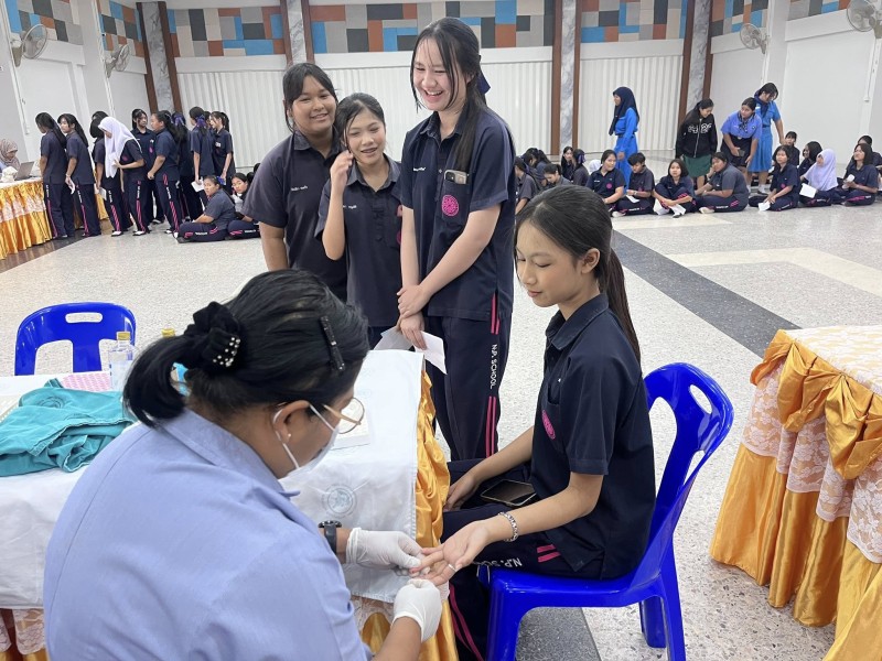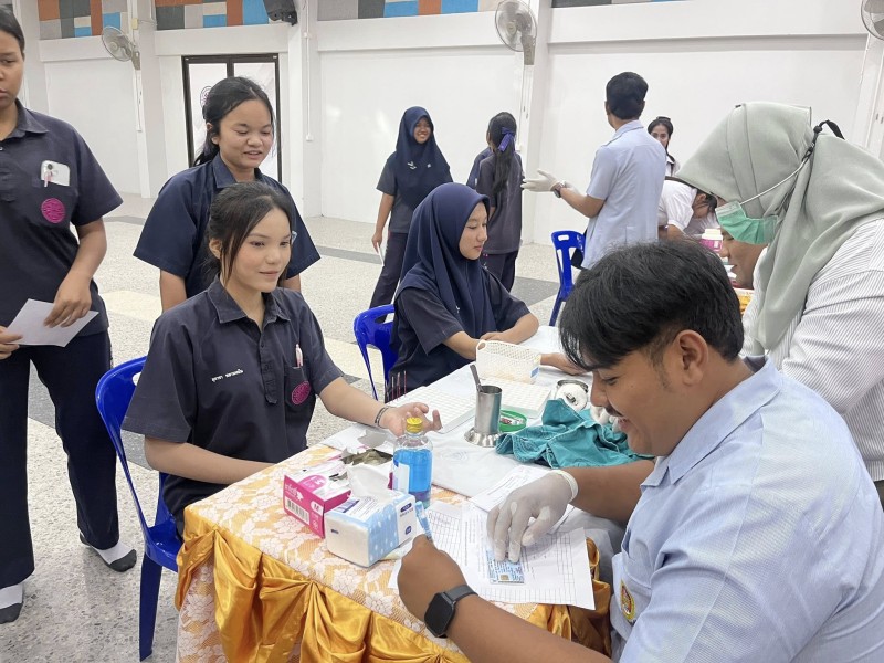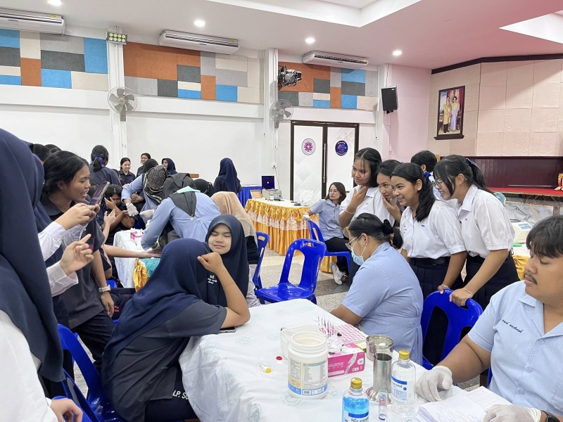 วันที่ 5 กุมภาพันธ์ 2568 งาน. งานส่งเสริมสุขภาพอนามัยในโรงเรียน กลุ่มบริหารทั่วไป โรงเรียนเหนือคลองประชาบำรุง โดย คุณครูสุญญตา แซ่จู หัวหน้างานส่งเสริมสุขภาพอนามัยในโรงเรียนและคณะ ร่วมกับ โรงพยาบาลเหนือคลอง จังหวัดกระบี่ ตรวจคัดกรองภาวะโลหิตจางในหญิงวัยรุ่น (อายุตั้งแต่ 13 - 18 ปี) ตามโครงการป้องกันภาวะโลหิตจางในหญิงวัยรุ่น จังหวัดกระบี่ ปี 2569 โดยมีนักเรียนผู้หญิงระดับชั้นมัธยมศึกษาปีที่2,3,4และ5 เข้ารับการคัดกรองโลหิต ซึ่งภาวะโลหิตจางในหญิงวัยรุ่น ส่งผลให้เป็นปัญหาต่อการเรียนของนักเรียนในช่วงอายุดังกล่าว ภาวะโลหิตจางกระทบพัฒนาการสมอง(IQ) และการเรียนรู้ สาเหตุมาจากการขาดธาตุเหล็ก โดยเฉพาะในหญิงวัยรุ่นที่เริ่มมีประจำเดือน จากสภาพปัญหาดังกล่าว จำเป็นจะต้องมีการคัดกรองภาวะโลหิตจางในหญิงวัยรุ่น ตั้งแต่อายุ 13 - 18 ปี เพื่อค้นหา และป้องกันกลุ่มเสี่ยงในโรงเรียน และให้ความรู้ด้านโภชนาการที่เหมาะสมเพื่อป้องกัน ณ อาคารศิริอันดามัน โรงเรียนเหนือคลองประชาบำรุง |