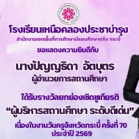 ขอแสดงความยินดีกับ นางปัญญธิดา อัตบุตร ผู้อำนวยการโรงเรียนเหนือคลองประชาบำรุง,คุณครูนรีพร สังข์ทองและคุณครูวิลาวรรณ วงศ์สนิท ที่ได้รับรางวัลยกย่องเชิดชูเกียรติ เนื่องในงานวันครูจังหวัดกระบี่ ครั้งที่ 70 ประจำปี 2569