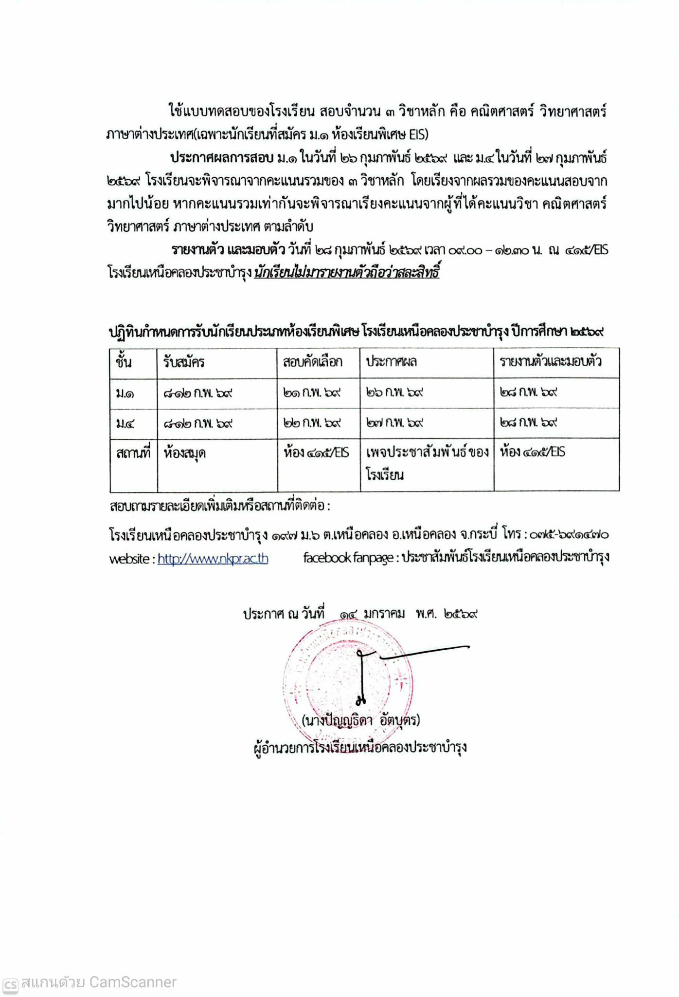 | ประกาศการรับสมัครนักเรียนเพื่อคัดเลือกเข้าศึกษาต่อระดับชั้นมัธยมศึกษาปีที่ 1 และชั้นมัธยมศึกษาปีที่ 4 ประจำปีการศึกษา 2569 ประเภทห้องเรียนพิเศษ |