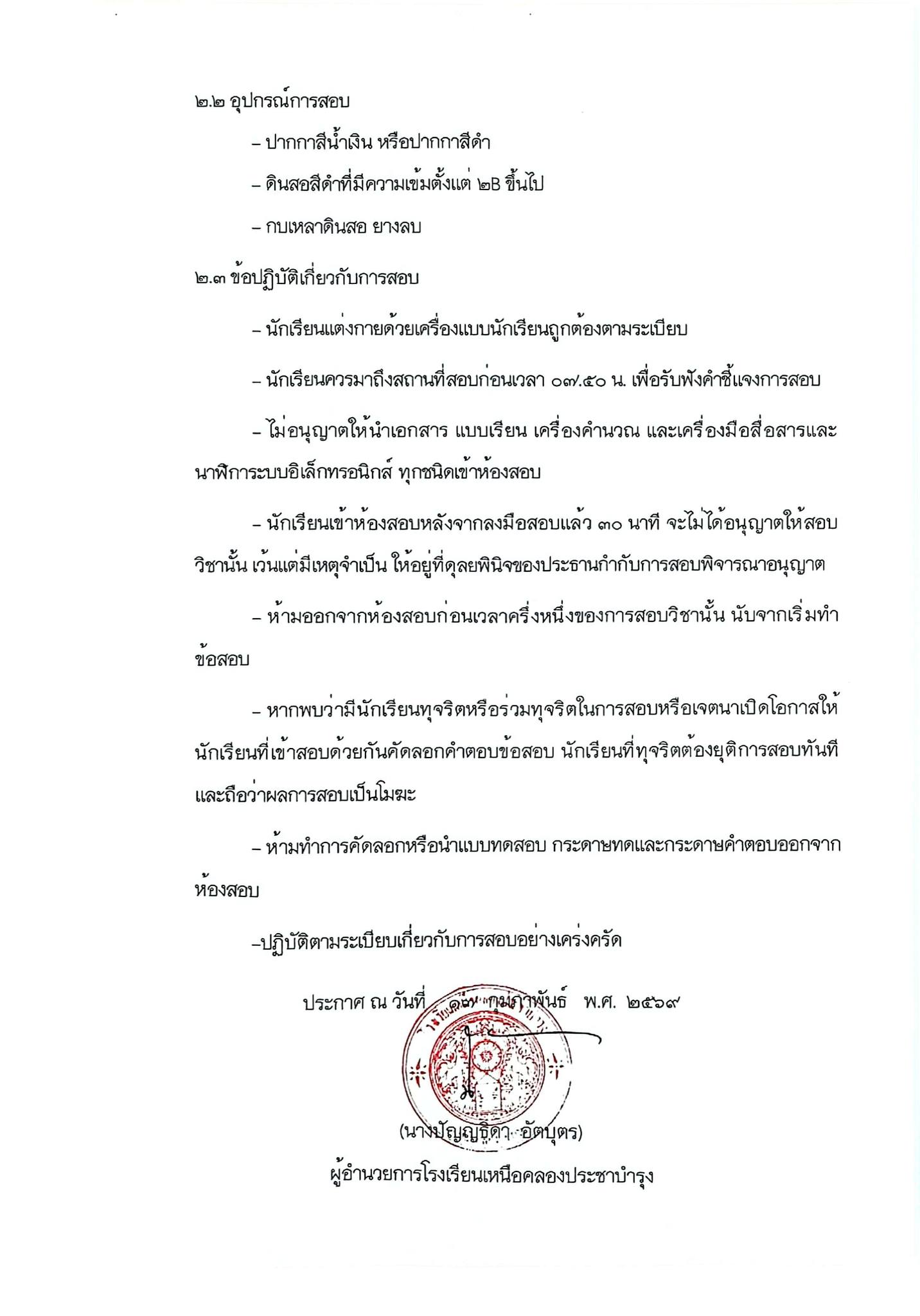 | ประกาศโรงเรียนเหนือคลองประชาบำรุง เรื่อง รายชื่อผู้มีสิทธิ์สอบคัดเลือกเข้าศึกษาต่อระดับชั้นมัธยมศึกษาปีที่ 1 (ห้องเรียนพิเศษ EIS) |